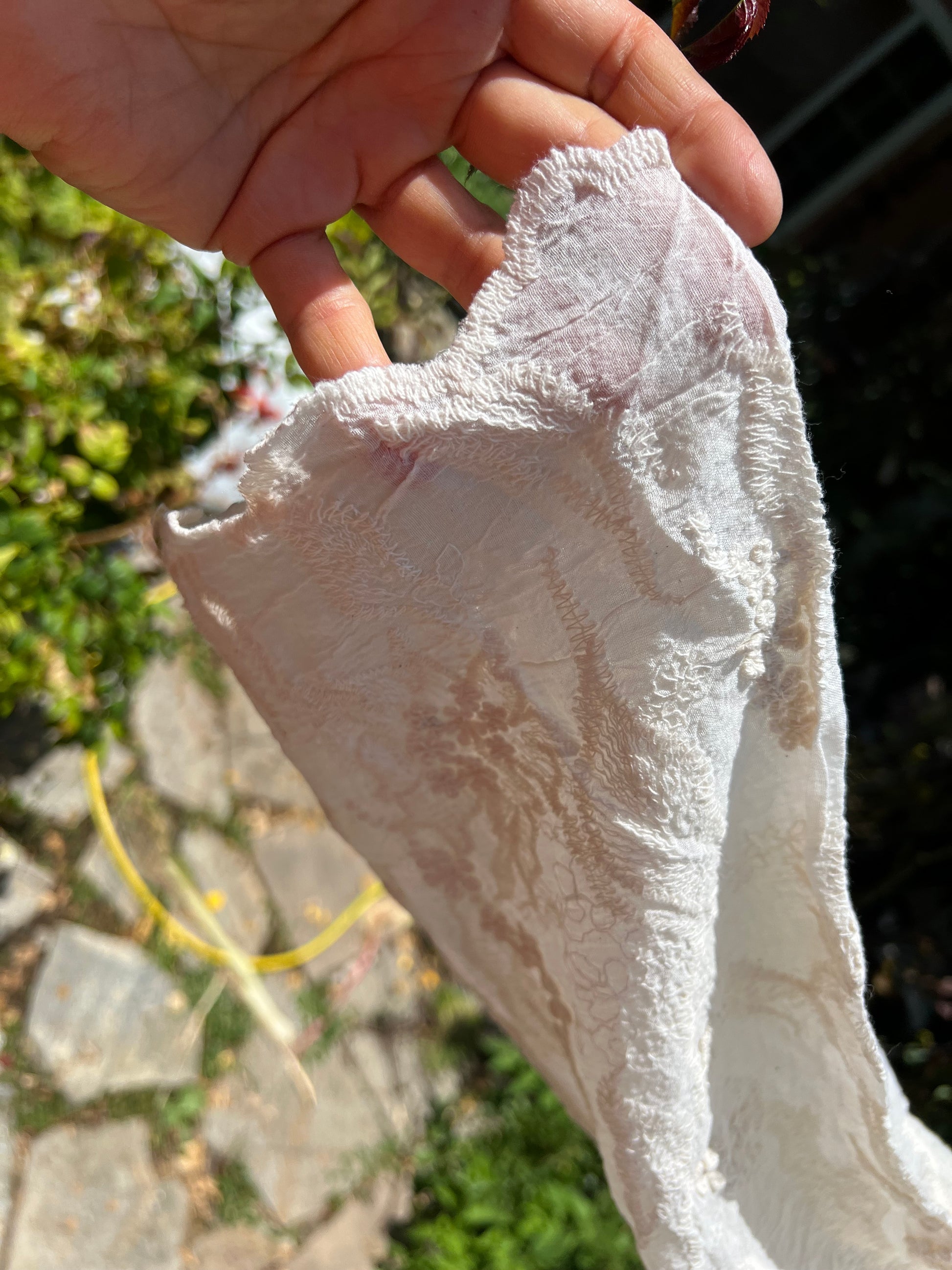 This is very light, soft and comfortable shirt in loose fit. Light beige color (or butter). Queen of Lace Cotton scalloped Hem Button up Collared shirt.